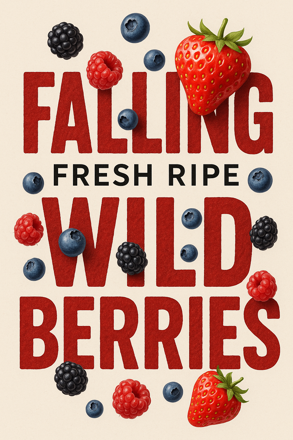 Colorful promotional graphic featuring various fresh berries with bold typography, ideal for marketing campaigns related to food, health, or seasonal products.