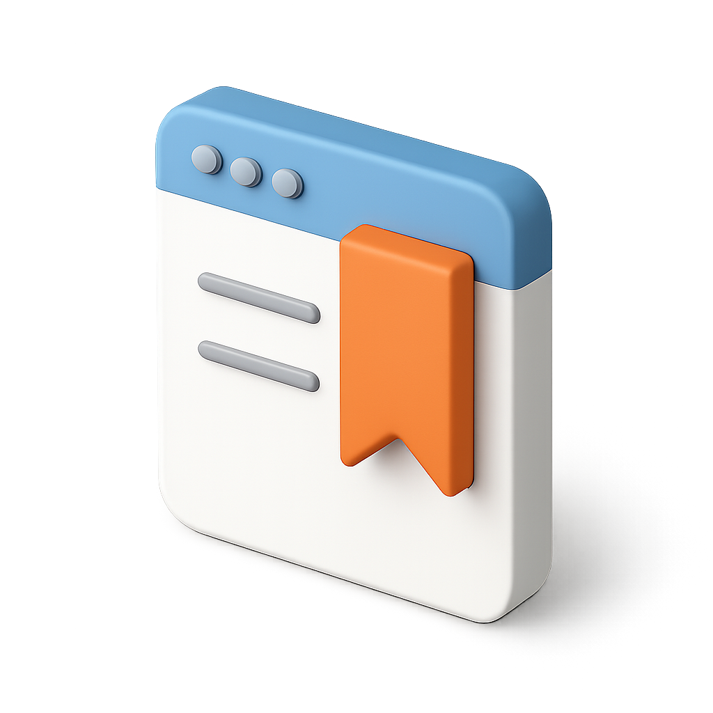 A modern, isometric 3D icon of a bookmark on a webpage, featuring a transparent background and a sleek design with vibrant colors.