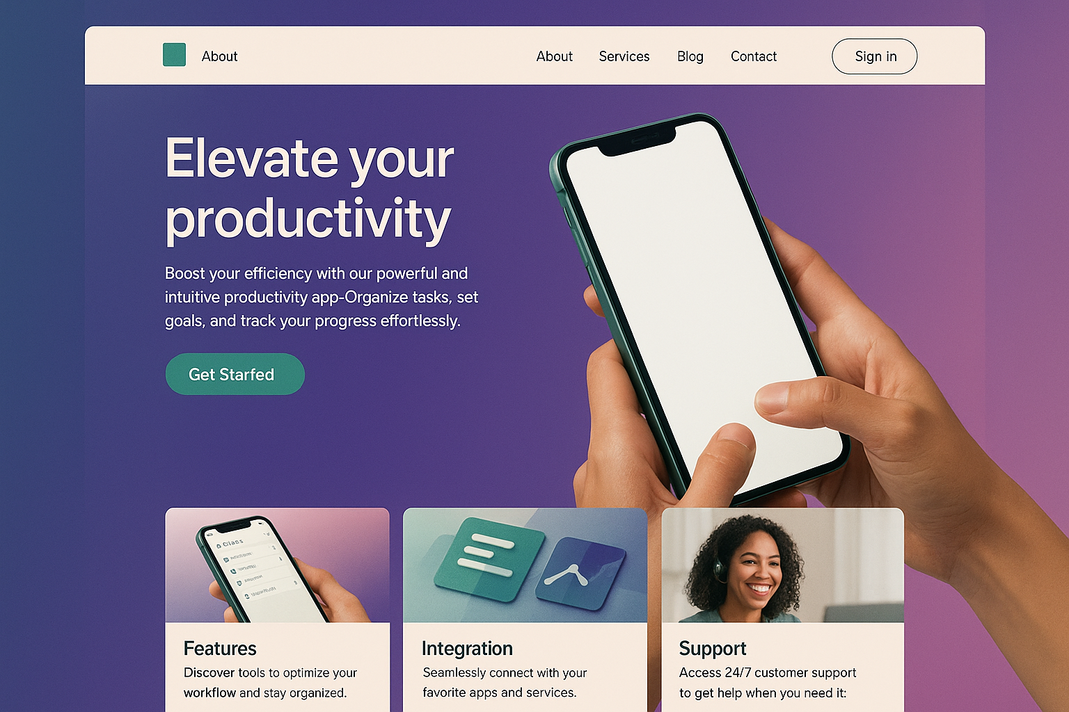 Stylized Landing Page Featuring a Phone
