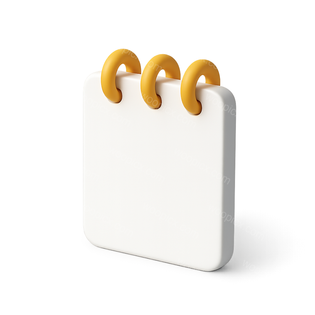 /Premium/Collection: /by davooda/Type: PNG/A minimalist 3D icon featuring a square shape with three yellow rings attached to the top. The design has a three-quarter view and a soft, volumetric feel, set against a gradient background.