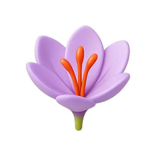 A vibrant and stylized purple flower emoji featuring bright orange stamens, ideal for digital communication and social media. The clean design makes it suitable for various applications.