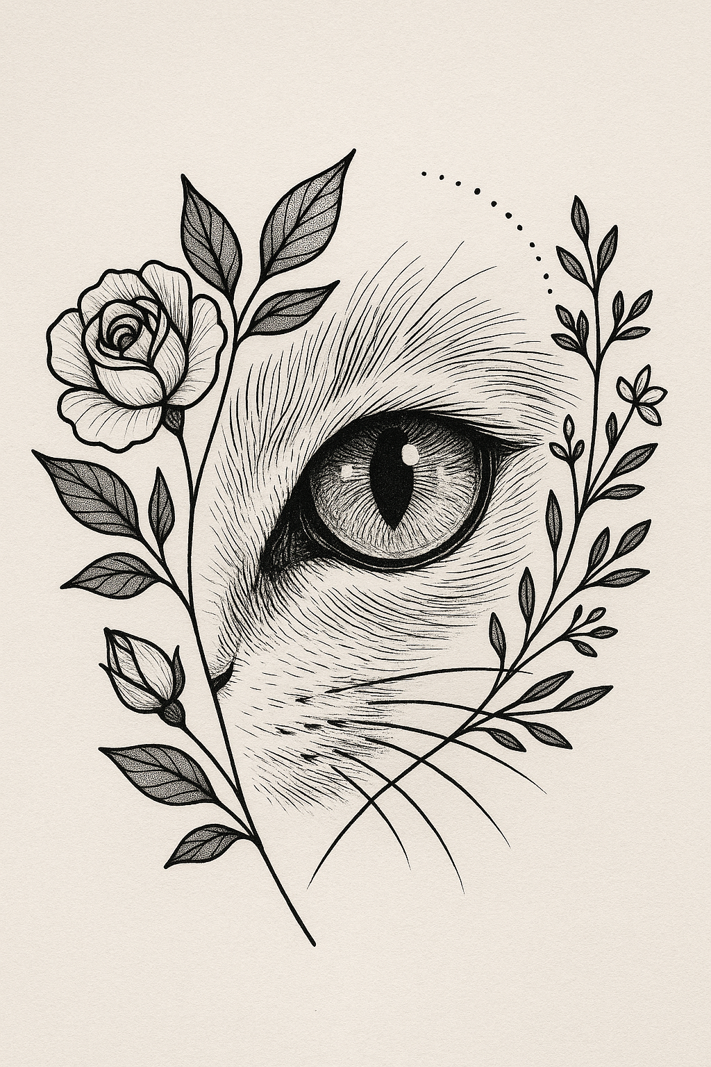 Artistic Illustration of a Cat's Eye with Floral Elements