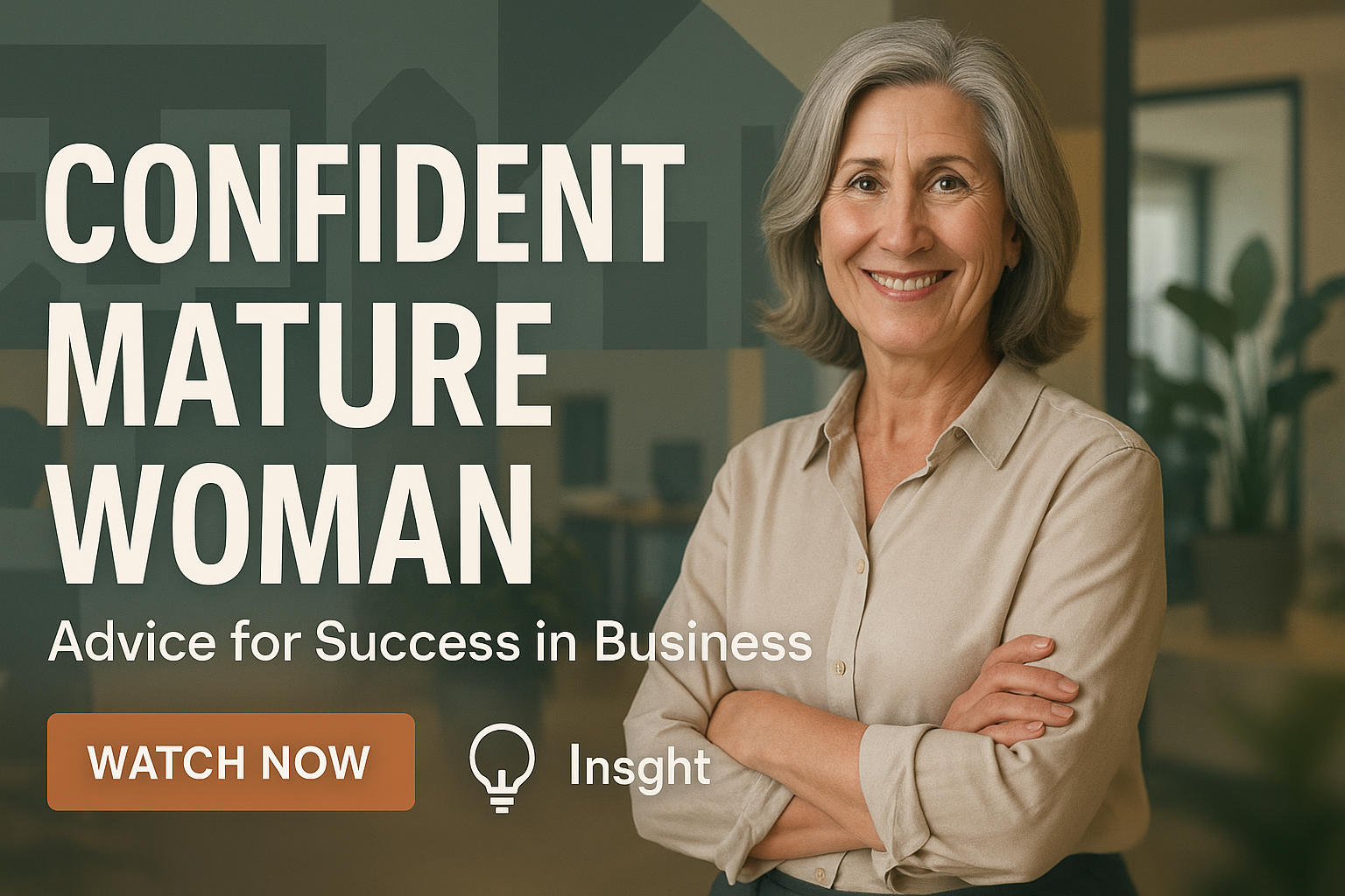 Professional Business Advice Promotional Image Featuring Confident Mature Woman