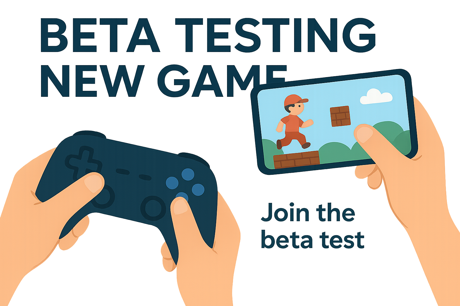 Vibrant promotional graphic for a new game beta test, featuring a gaming controller and a mobile device. Ideal for social media or gaming community announcements.