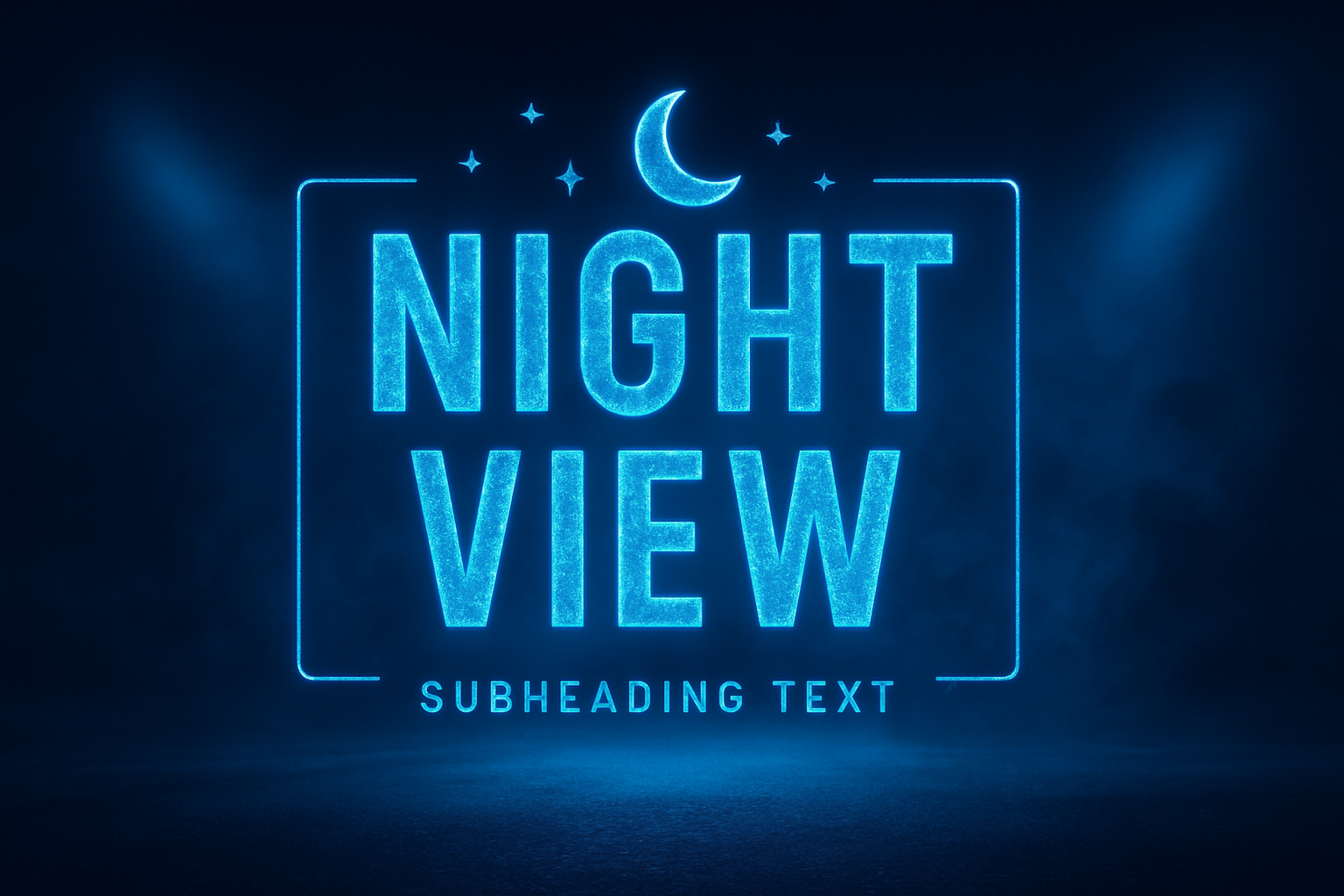 /Collection: /by davooda/Type: PNG/A visually striking graphic featuring glowing text that reads 'NIGHT VIEW' with a moon and stars, suitable for nighttime events or promotions. The dark background enhances the luminous effect.