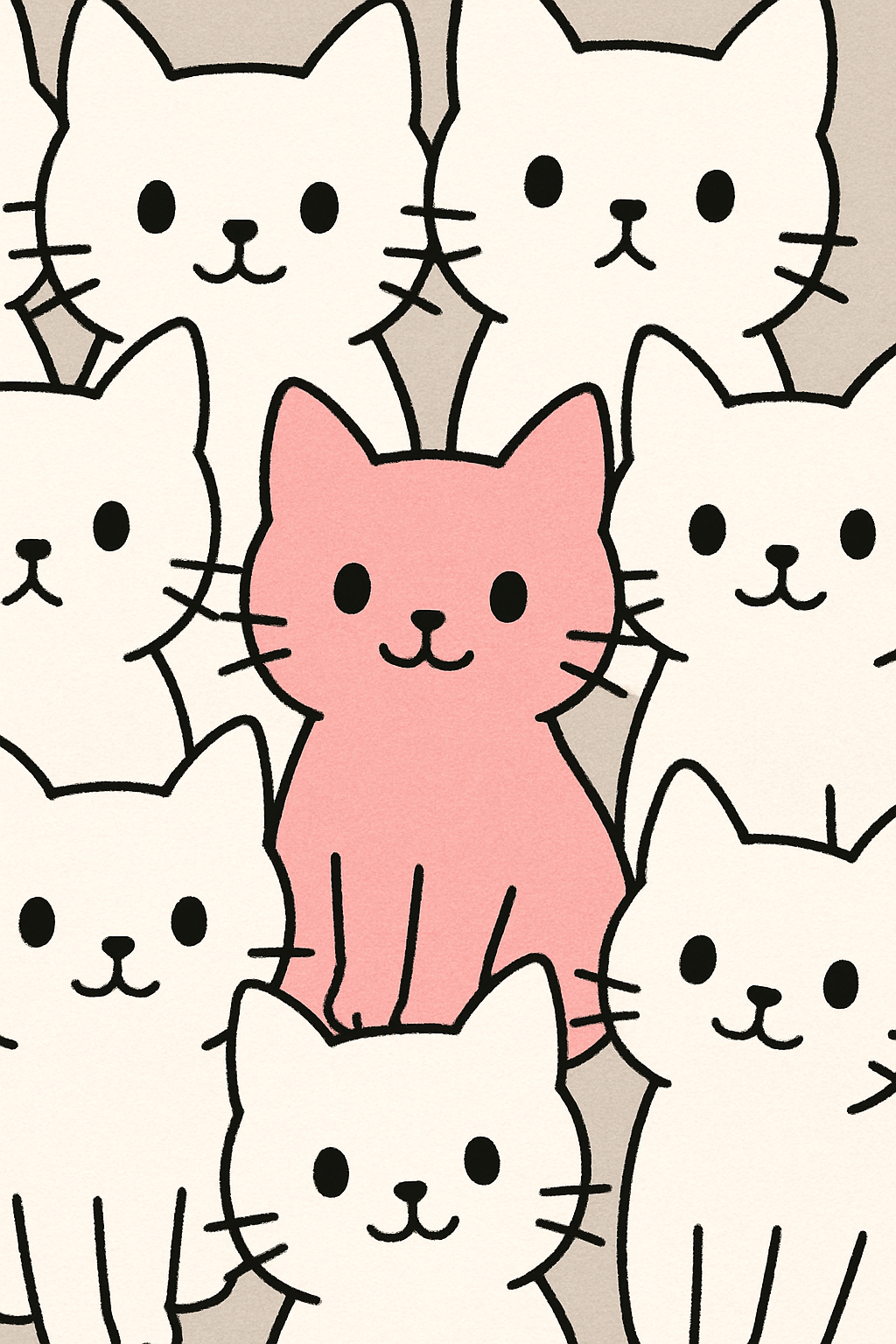 Playful Cat Illustration Featuring a Unique Pink Cat
