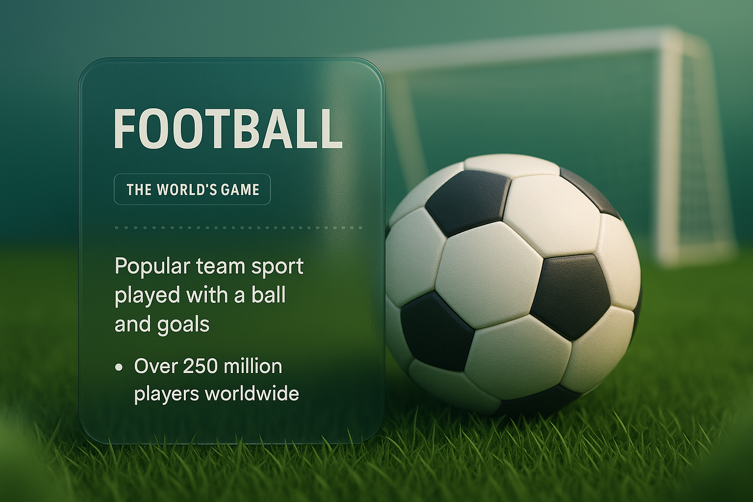 A visually striking 3D graphic of a football with an integrated text block, highlighting the sport's global appeal. The design features a smooth gradient background and clear, readable text.