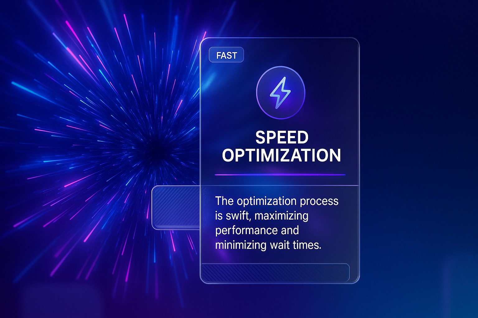 /Collection: /by davooda/Type: PNG/An abstract background featuring a dynamic blue and purple neon glow, symbolizing speed and light in a galaxy. It includes a transparent block with text on speed optimization.