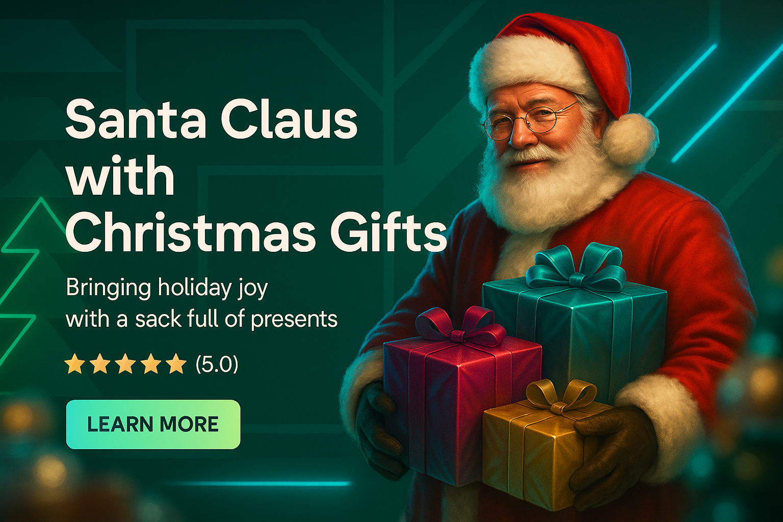 Festive Holiday Promotion Featuring Santa Claus with Gifts