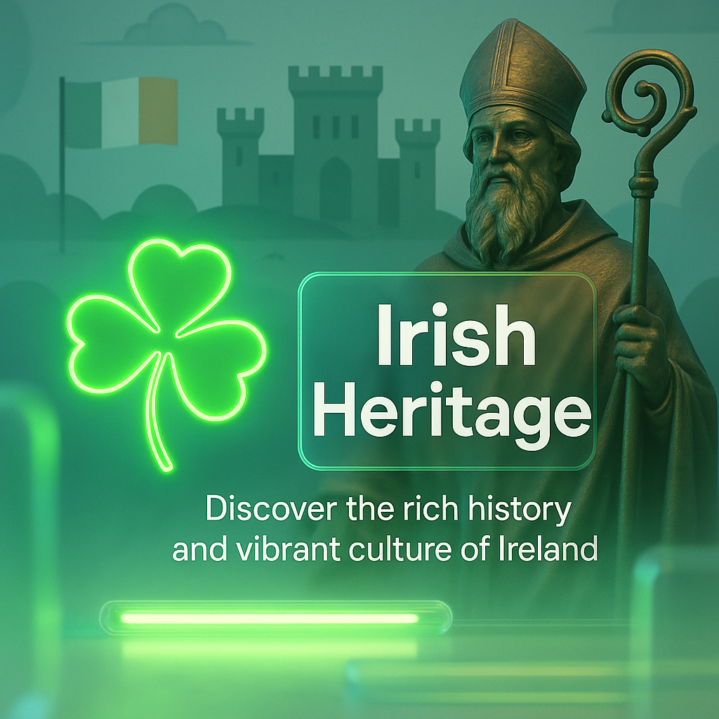 Irish Heritage Celebration Graphic with Neon Elements