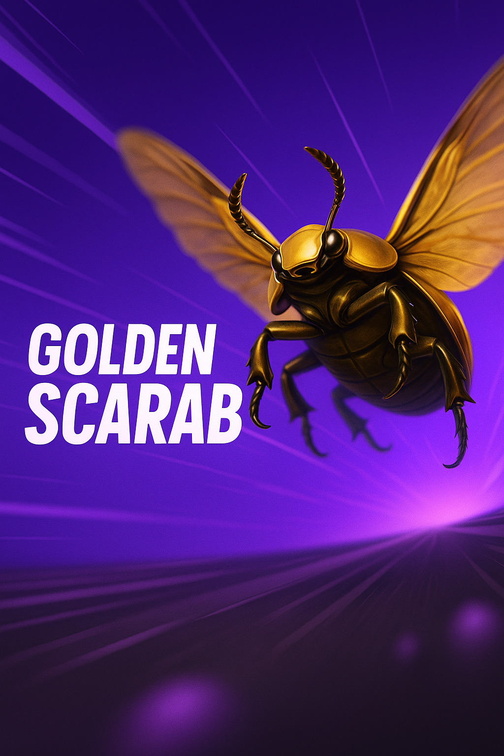 /Collection: /by davooda/Type: PNG/A visually striking illustration of a golden scarab beetle in flight. The dynamic composition features a smooth gradient background, enhancing the sense of motion and depth.