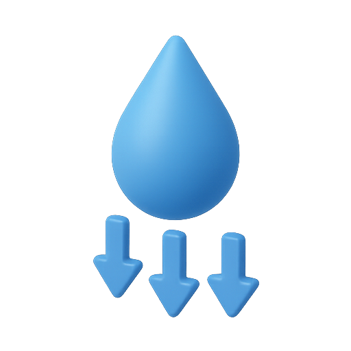 A minimalist design featuring a blue water drop icon accompanied by three downward-pointing arrows. Ideal for use in apps or websites focused on water conservation or environmental themes.