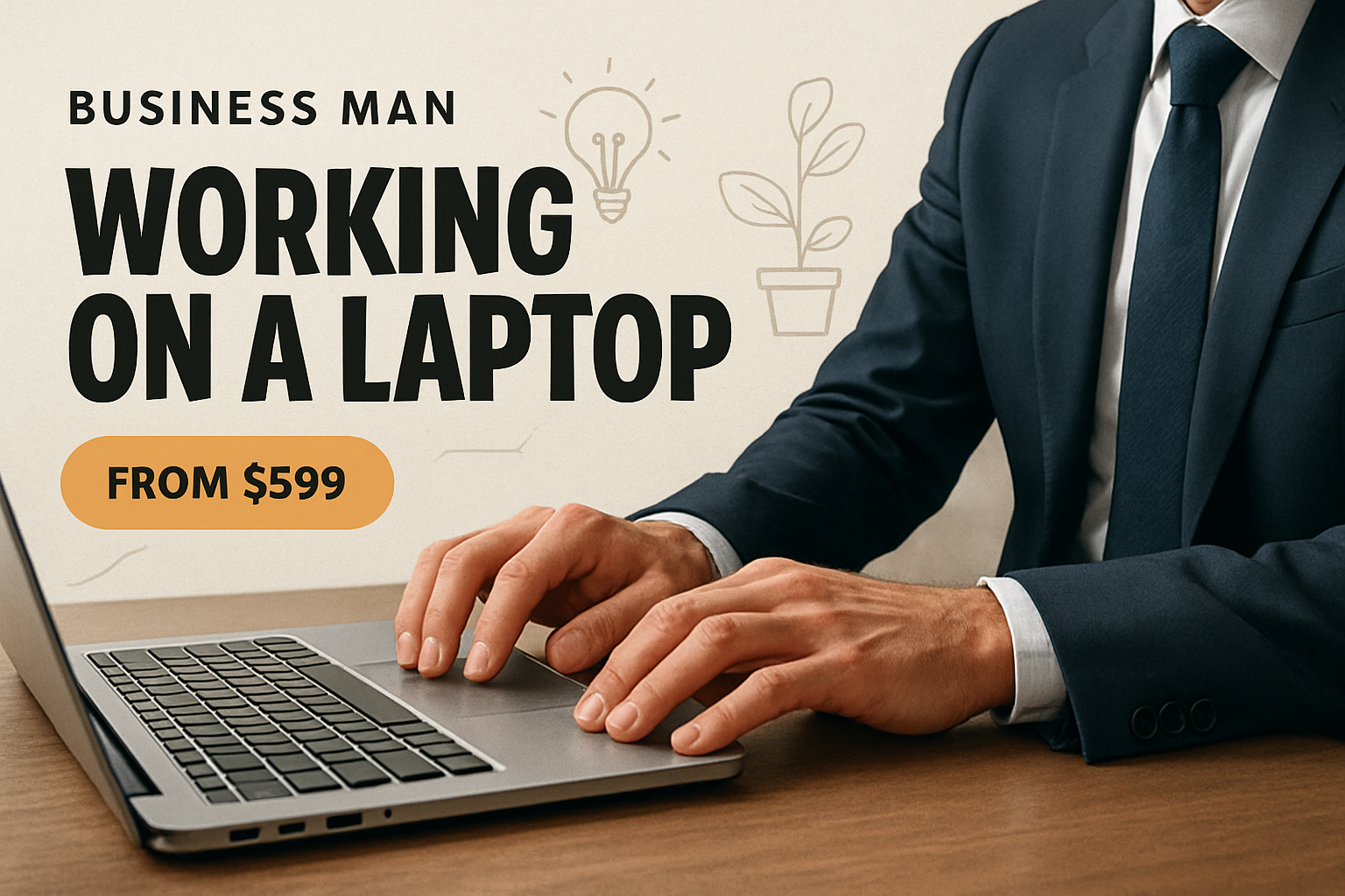 /Collection: /by davooda/Type: PNG/A close-up of a businessman typing on a laptop in a modern home office. The background features light textures and simple contour drawings, enhancing the workspace's dynamic feel.
