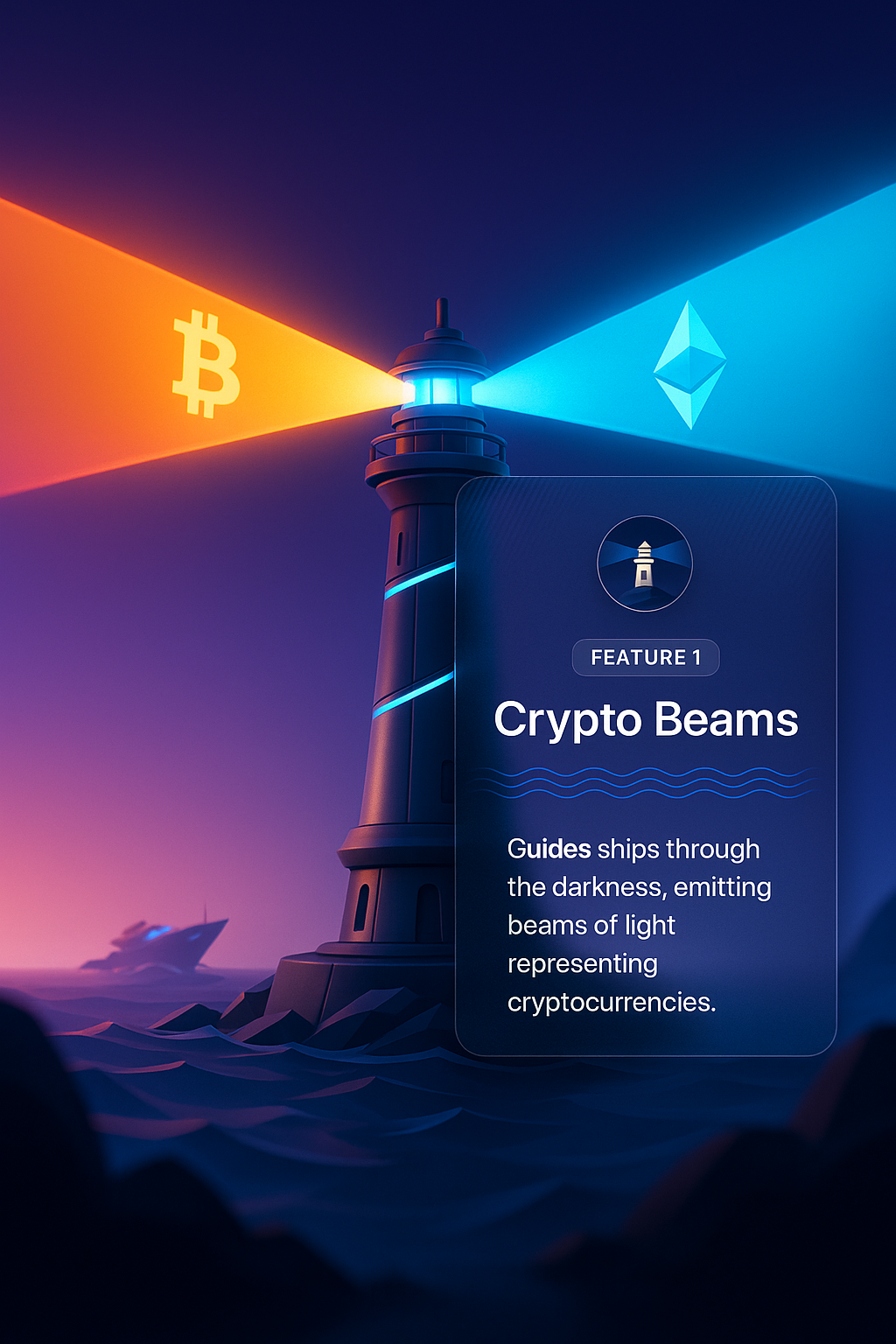 Futuristic Lighthouse Emitting Crypto Beams for Navigation