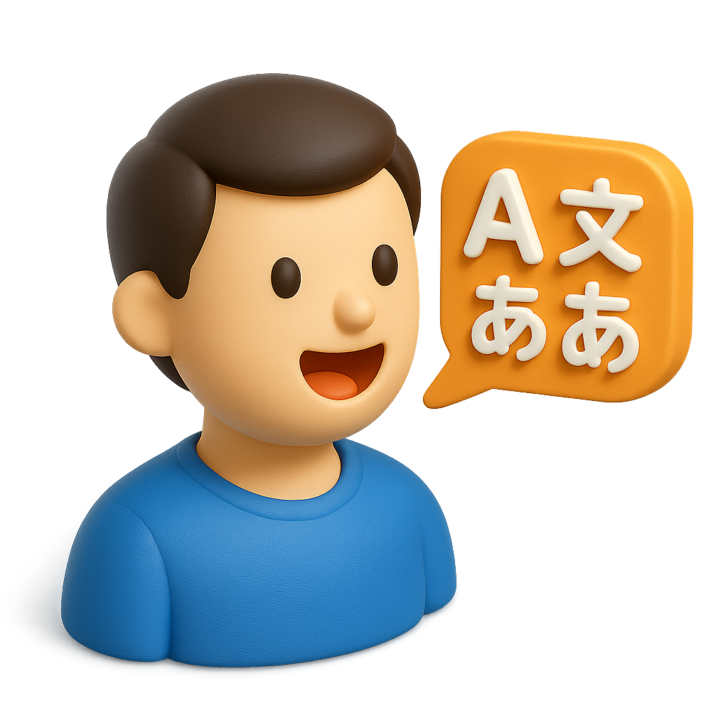 /Collection: /by davooda/Type: PNG/A stylized 3D icon of a person with a cheerful expression, representing multilingual speaking. The design features vibrant colors and a speech bubble with language characters.