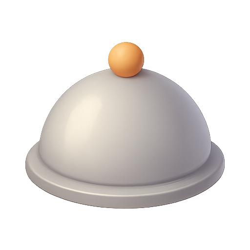 A stylized 3D rendering of a cloche, featuring a smooth surface and a decorative sphere on top. This design is ideal for culinary or restaurant-related themes.