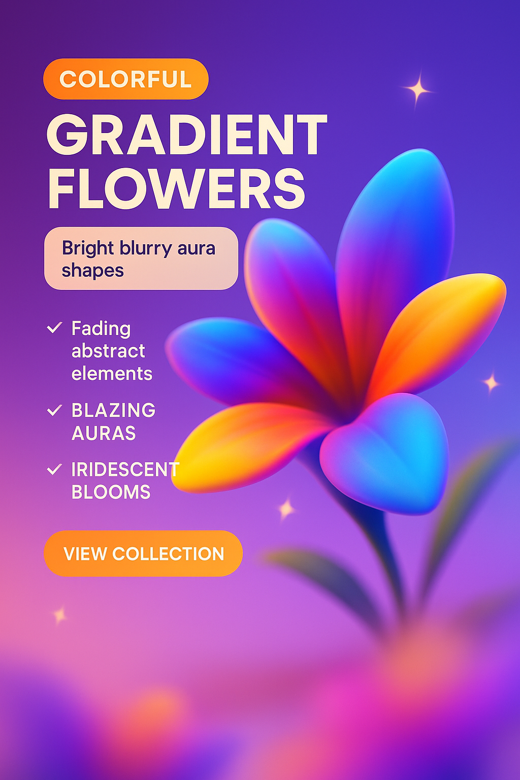 Colorful Gradient Flowers with Blazing Auras and Abstract Elements