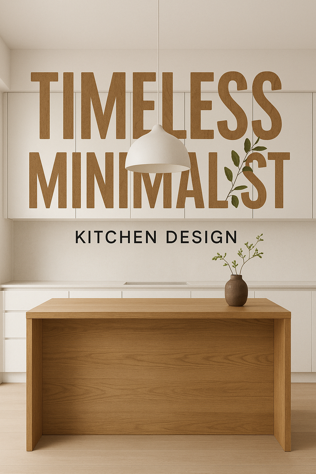 Stylish kitchen design graphic featuring a minimalist aesthetic with bold typography and natural elements, ideal for interior design inspiration and home decor marketing.