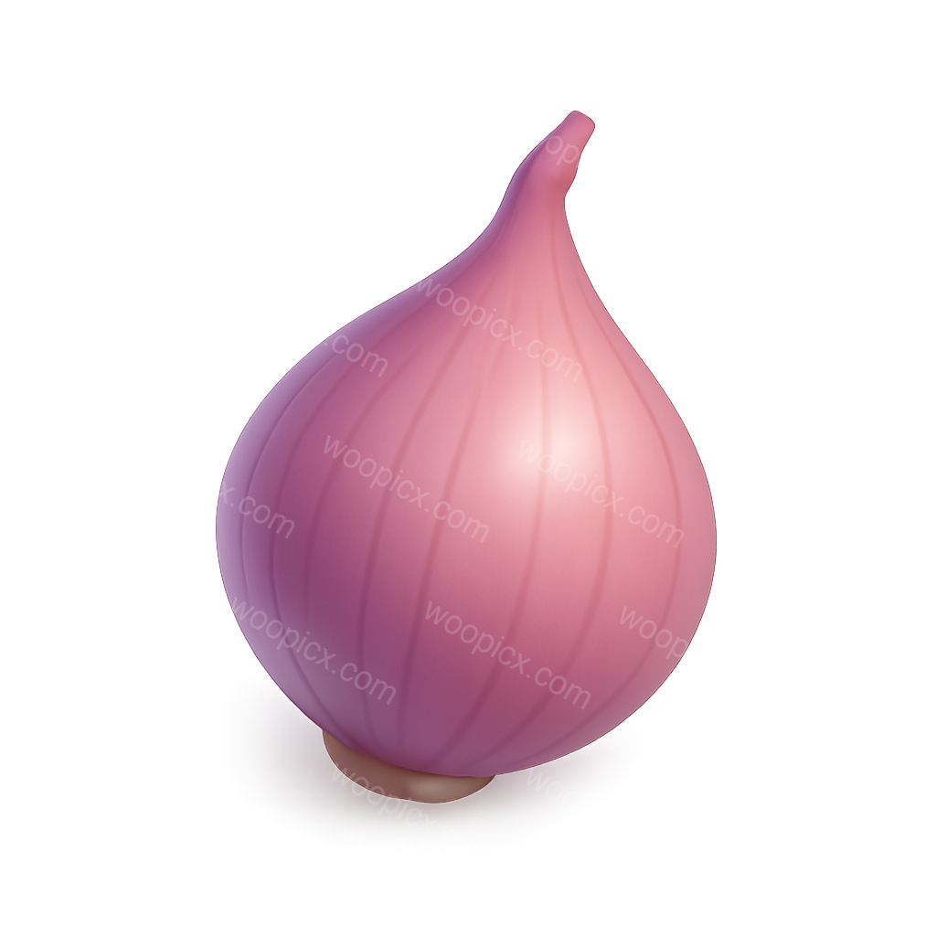 /Premium/Collection: /by davooda/Type: PNG/A digitally rendered 3D icon of a shallot, showcasing a smooth, pink exterior with subtle texture details, set against a transparent background in an isometric perspective.