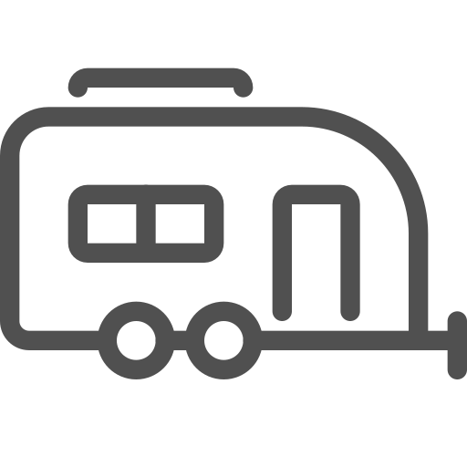 outline simple icon: camping, caravan, outdoors, recreational vehicle, rv