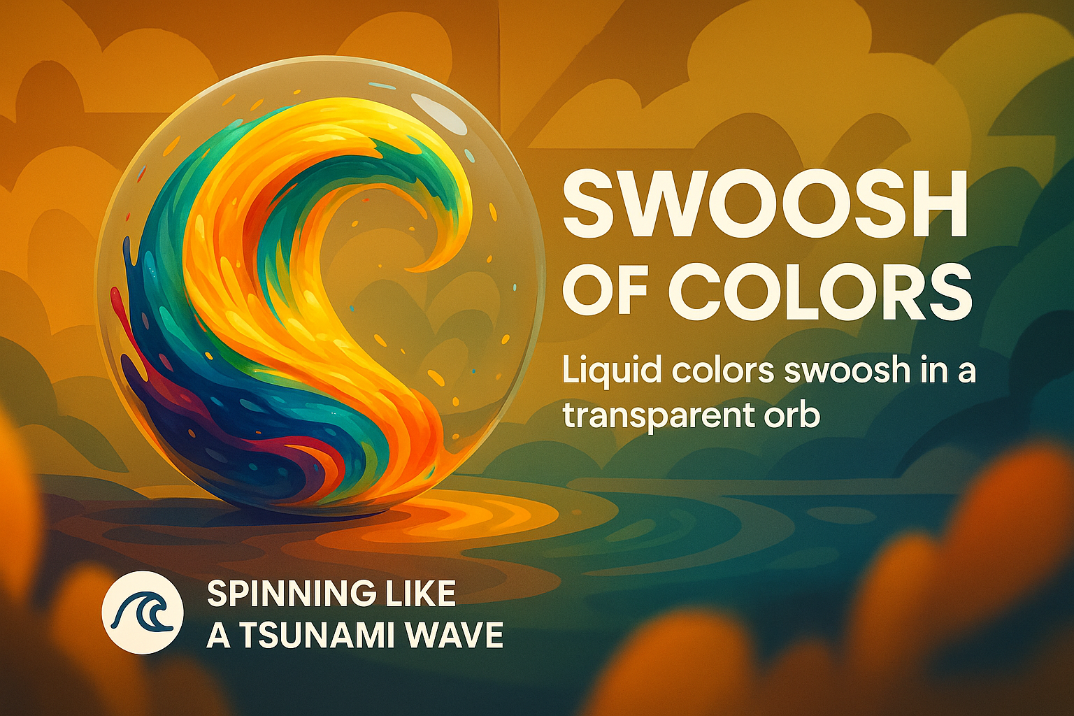 Vibrant abstract design featuring a swirling wave of colors within a transparent orb. Ideal for creative projects and digital art showcases.