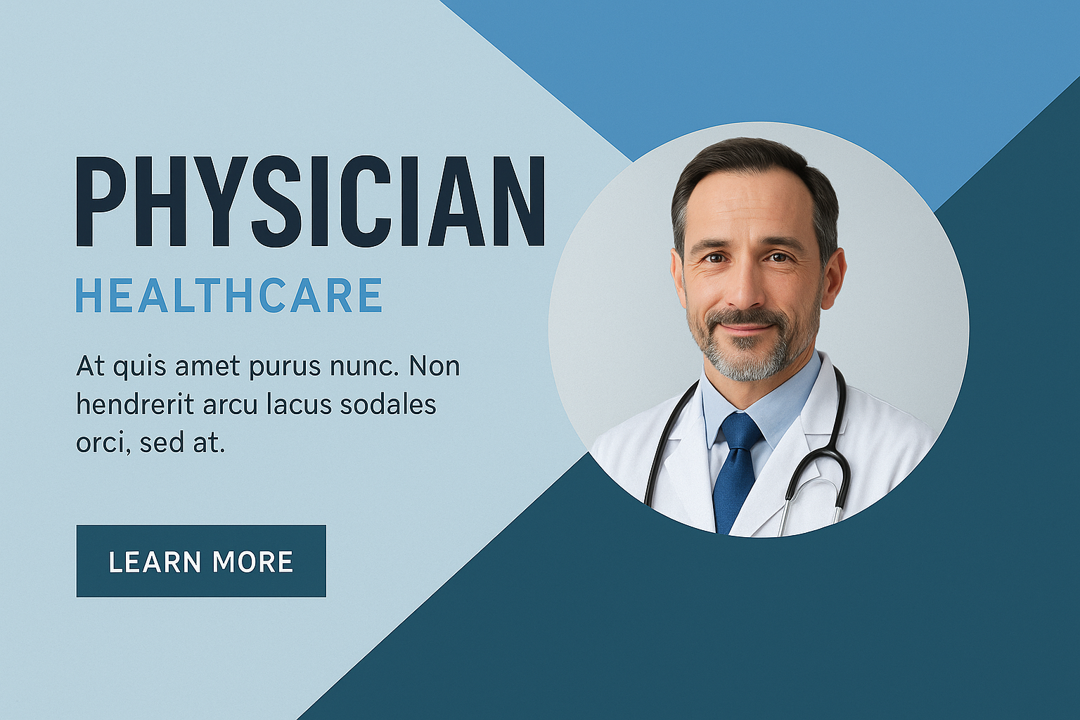 /Collection: /by davooda/Type: PNG/A professional layered composition showcasing a physician with a stethoscope, accompanied by a bold title and secondary text. The design features complementary colors and a clear hierarchy, inviting viewers to learn more.