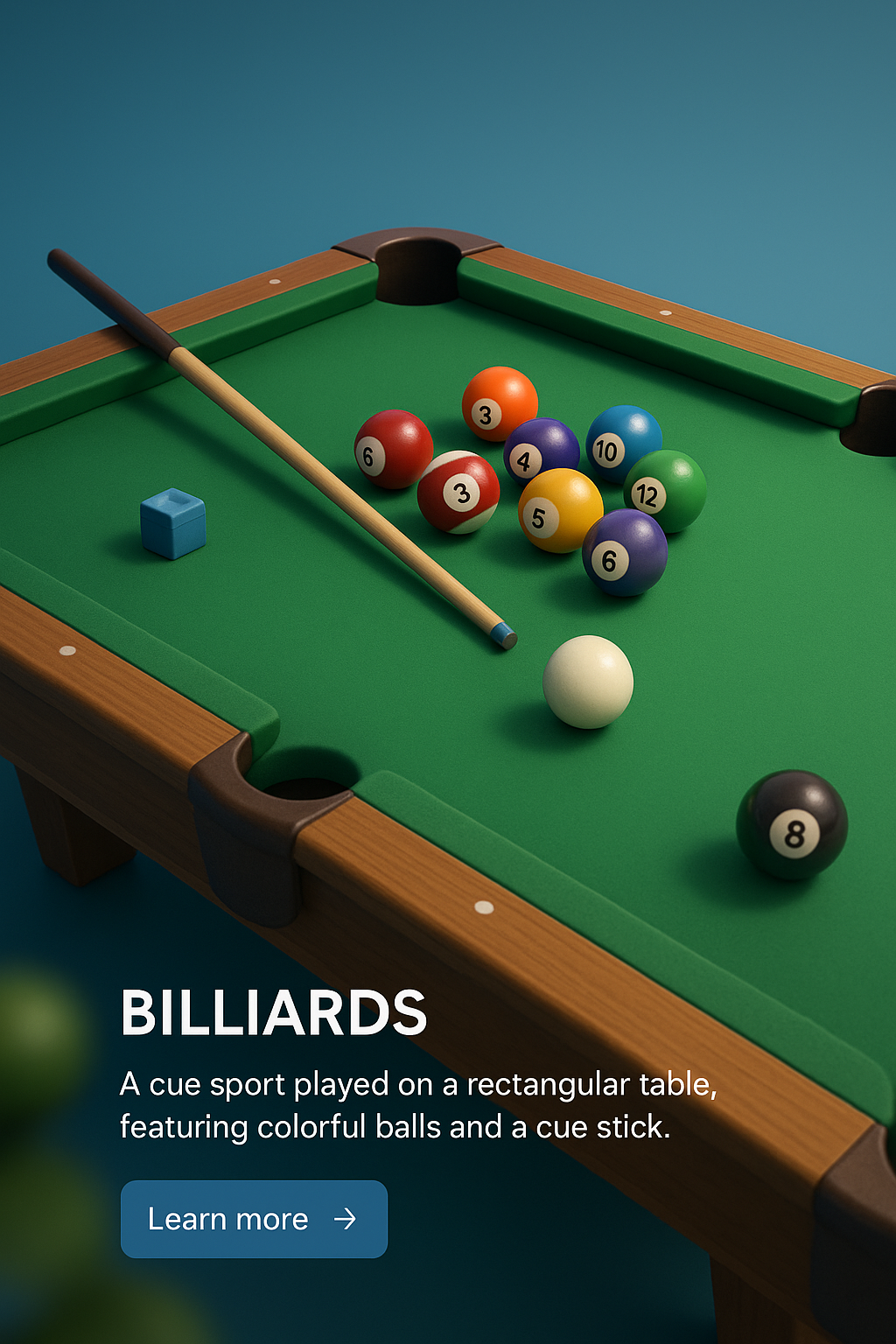 /Collection: /by davooda/Type: PNG/A detailed 3D illustration of a billiards table featuring colorful balls and a cue stick. The scene is designed with a smooth gradient background, showcasing the sport's essence.
