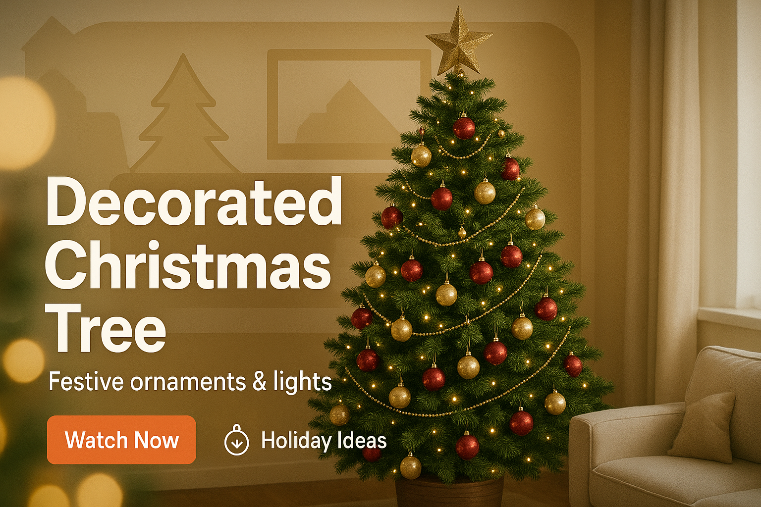 /Collection: /by davooda/Type: PNG/A warm and inviting image of a beautifully decorated Christmas tree, showcasing festive ornaments and lights. Ideal for holiday marketing and decoration ideas.
