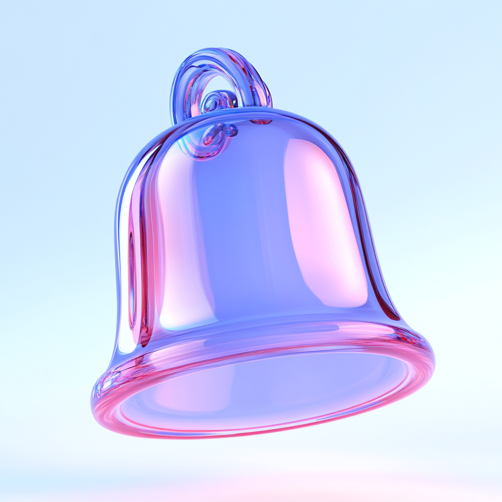A visually appealing 3D render of a colorful glass bell, featuring smooth curves and a gradient color transition, suitable for decorative or illustrative purposes.