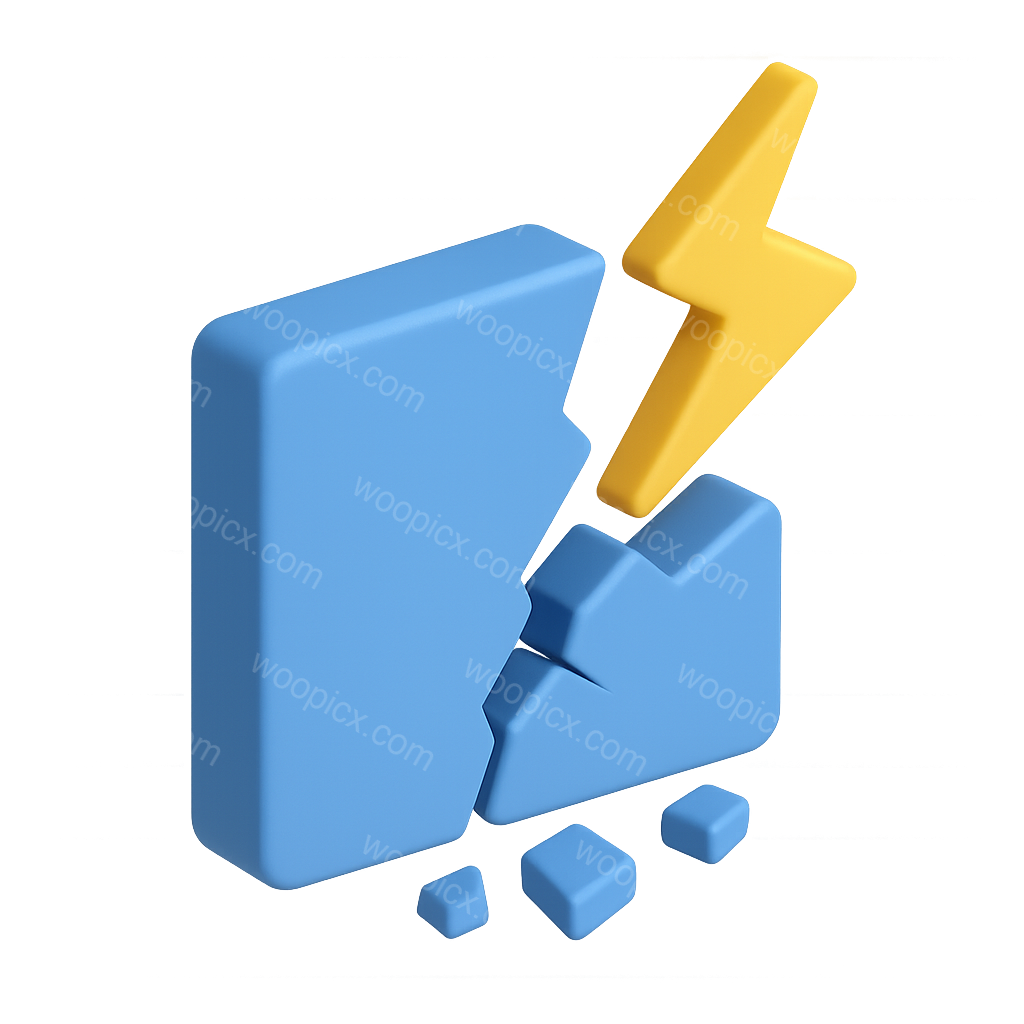 Dynamic 3D Icon Design Featuring Broken Elements and Lightning