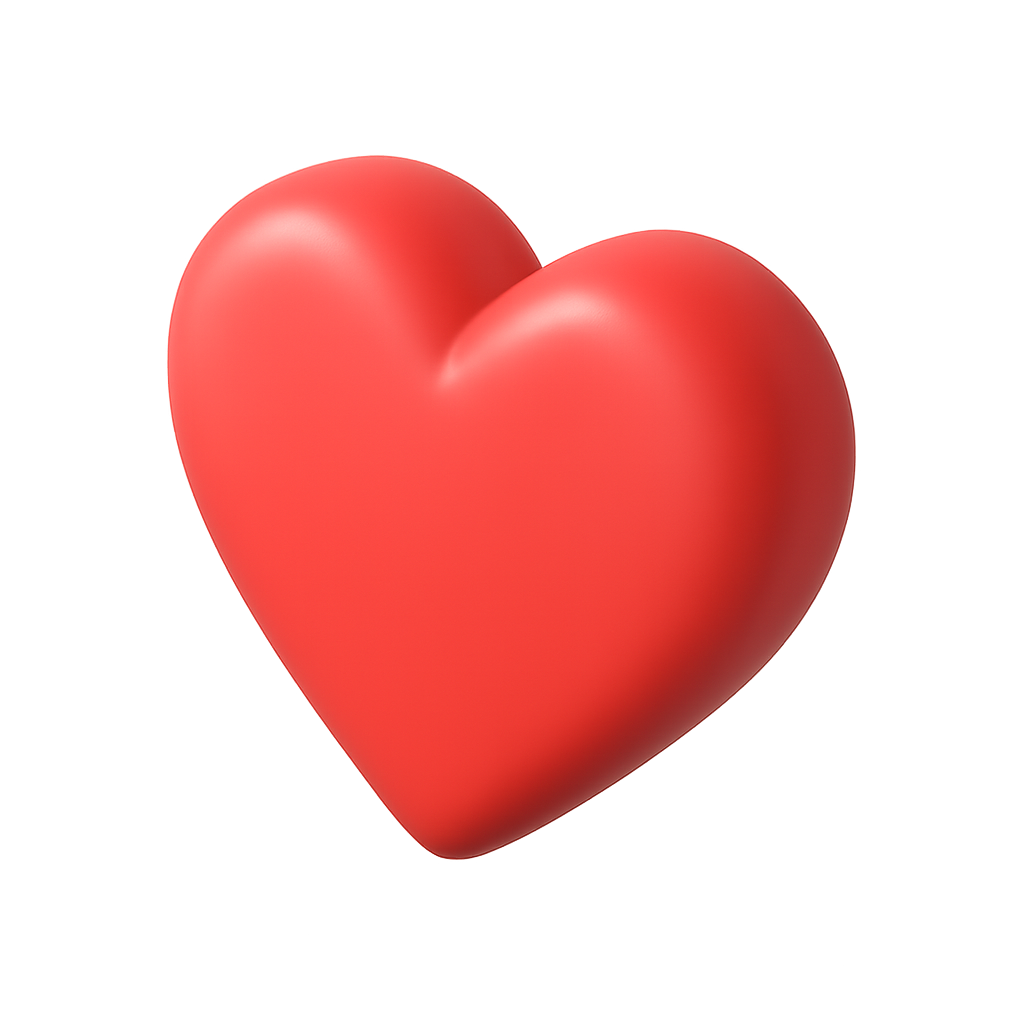 A vibrant red 3D heart icon presented in a three-quarter view, featuring a glossy surface and a soft glow effect, set against a dark background.