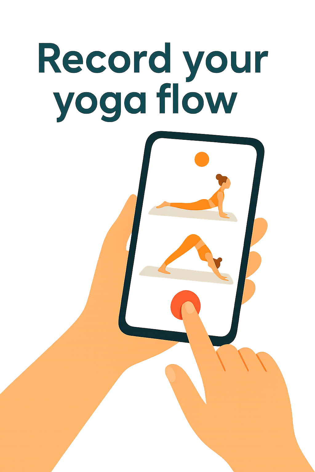 /Collection: /by davooda/Type: PNG/Digital illustration depicting a person recording a yoga flow on a smartphone, showcasing a modern and health-focused design. Ideal for wellness apps or social media marketing.