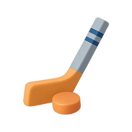 A 3D-rendered illustration of a hockey stick and puck, featuring a playful design. Ideal for sports-related content, youth programs, or promotional materials.