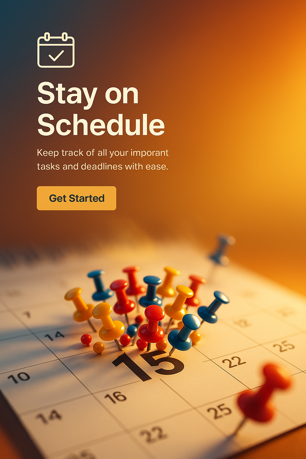 This image features a close-up of a calendar with colorful pushpins, emphasizing task management and scheduling. Itβs ideal for productivity apps or websites.