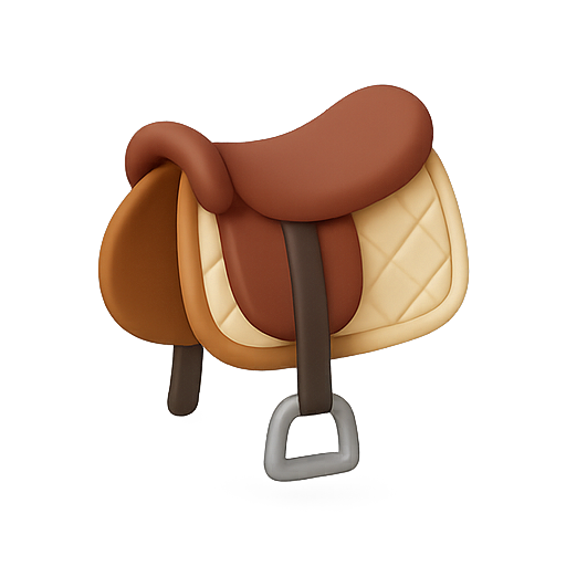 A colorful and playful cartoon-style illustration of a horse saddle, featuring soft curves and vibrant colors. Ideal for children's books or equestrian-themed graphics.