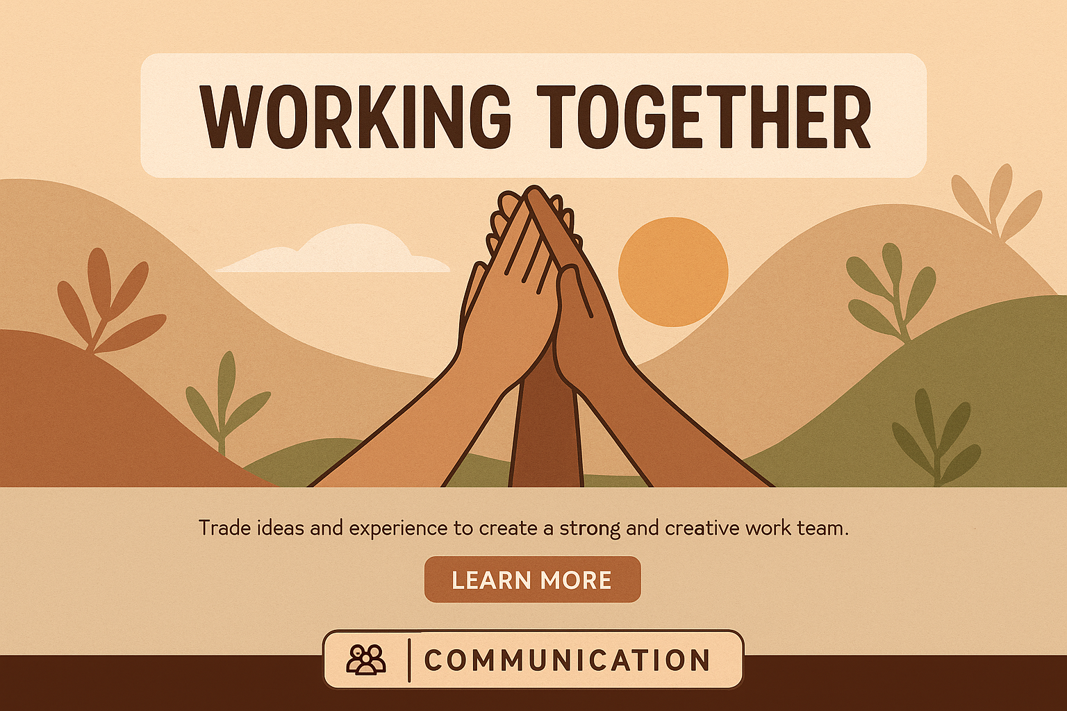 /Collection: /by davooda/Type: PNG/An illustration depicting hands united in the air, symbolizing teamwork. The design features a boho style with a warm color palette and minimalistic background elements.