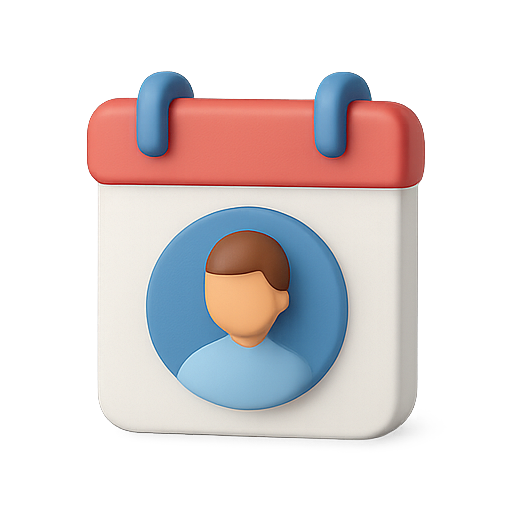 A modern 3D calendar icon featuring a user profile silhouette, designed with a playful color palette. Ideal for applications related to scheduling or user management.
