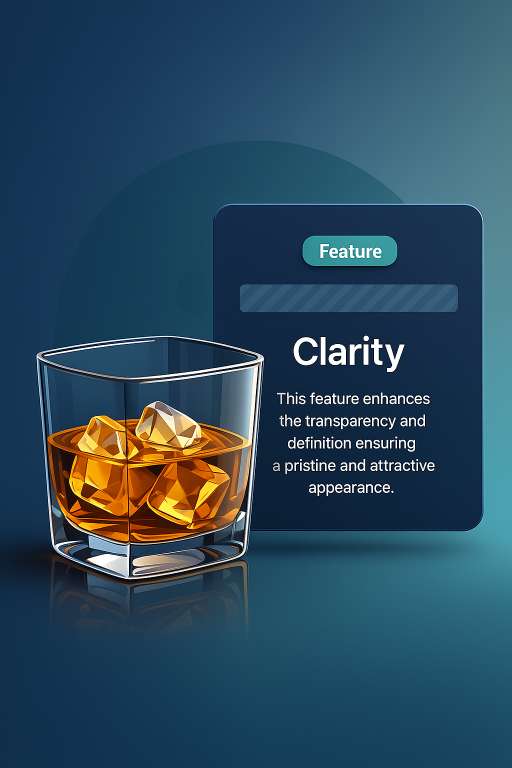 /Collection: /by davooda/Type: PNG/A 3D illustration of a whiskey glass filled with ice cubes, showcasing clarity as a key feature. The glass is set against a smooth gradient background, enhancing its appeal.