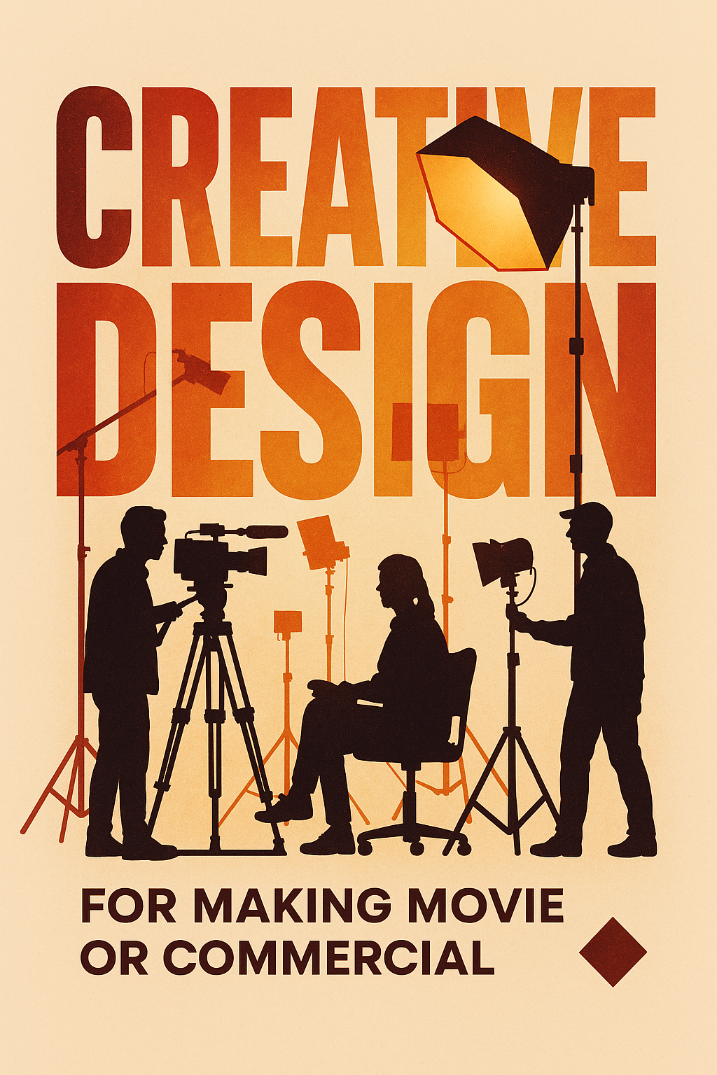 /Collection: /by davooda/Type: PNG/Stylized promotional poster highlighting creative design concepts for film and commercials. The image features silhouettes of filmmakers with equipment, showcasing a modern aesthetic ideal for advertising in the film industry.