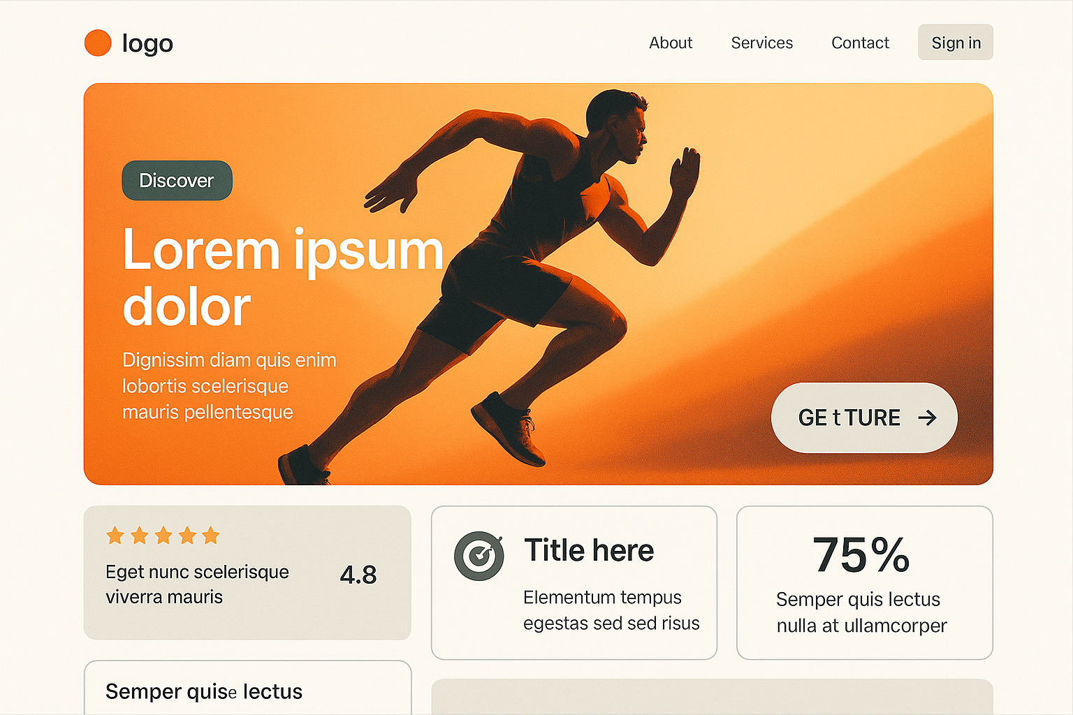 /Collection: /by davooda/Type: PNG/A sleek landing page layout featuring a dynamic male runner silhouette, engaging text, and action buttons. Designed with a bento grid style and clean visuals.