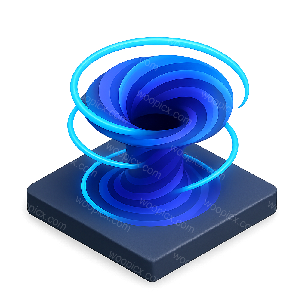 A captivating 3D icon depicting a wormhole portal with swirling blue tones and glowing rings, set against a dark background. The isometric view enhances its volumetric design.