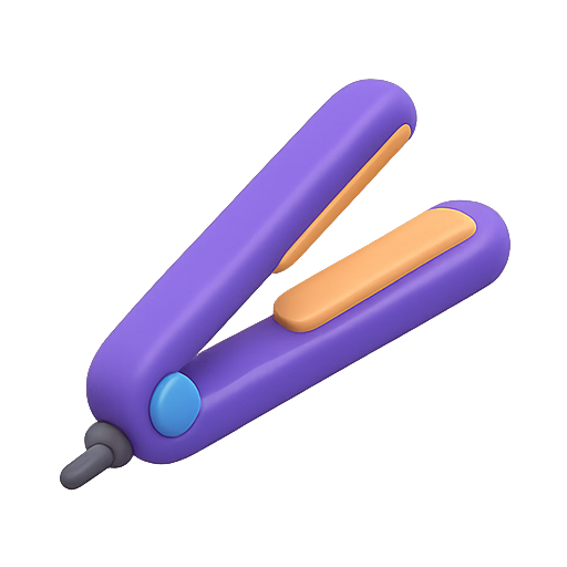 A 3D rendered hair straightener featuring a playful design with vibrant purple and orange colors. Ideal for beauty and haircare product promotions.