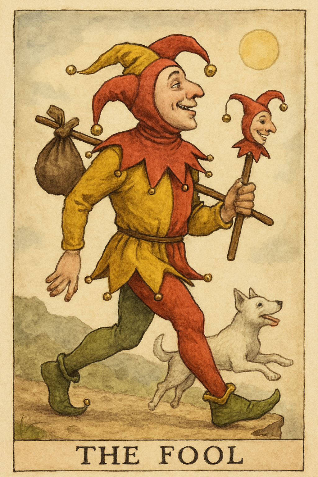 Illustration of The Fool Tarot Card Featuring a Cheerful Jester