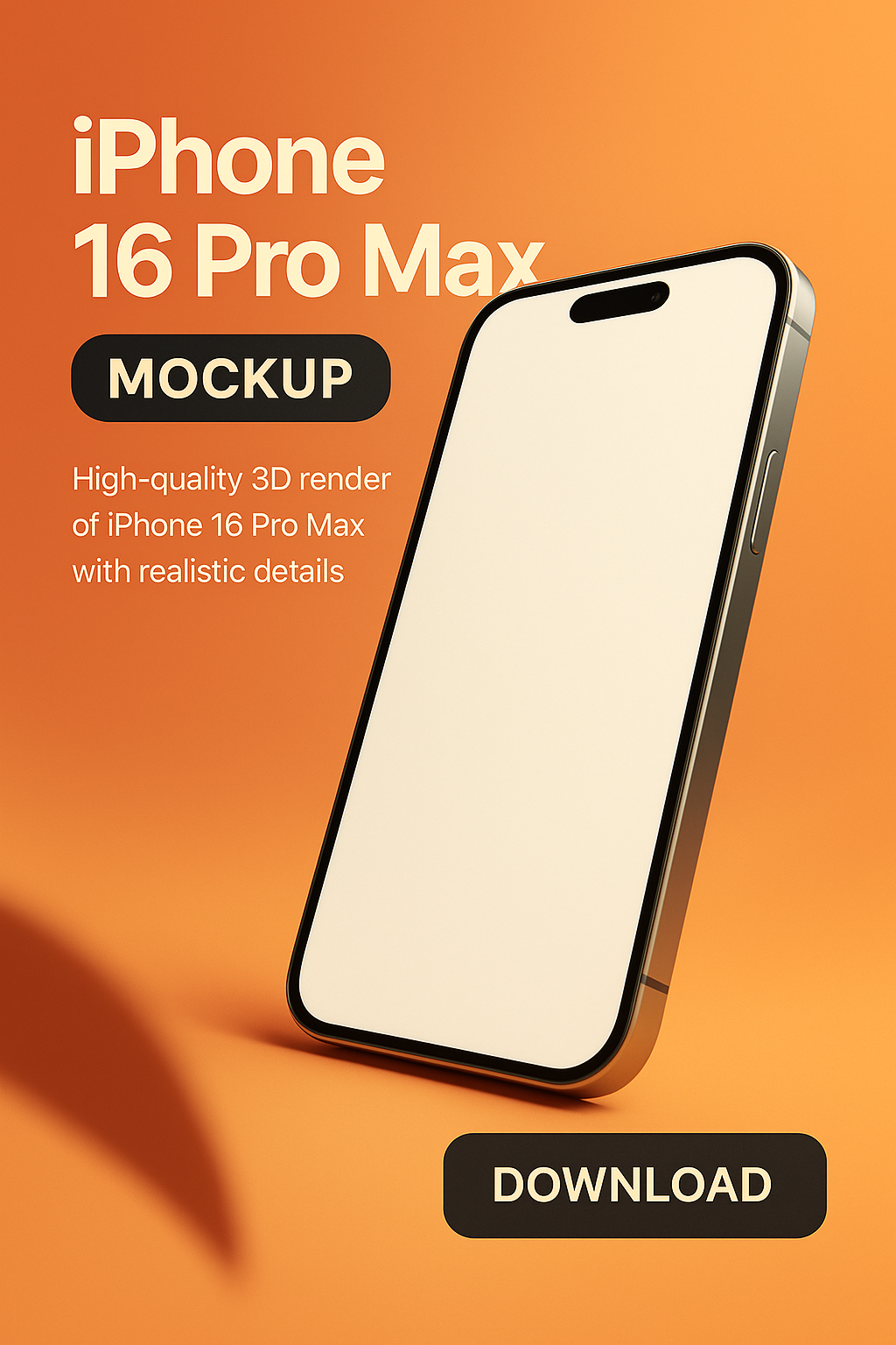Realistic iPhone 16 Pro Max Mockup with Orange Background