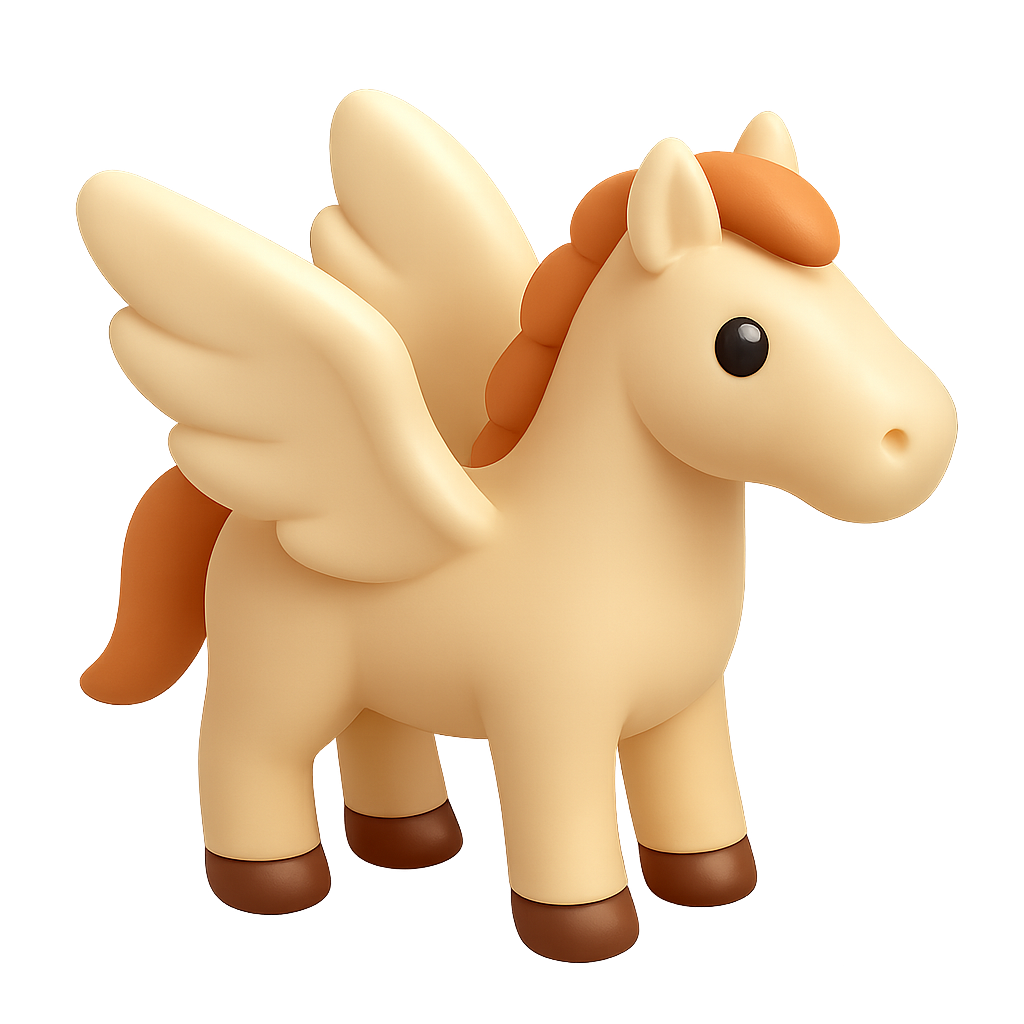 This charming 3D icon features a cute winged pony with a light beige body and orange mane. Perfect for children's themes or playful designs.