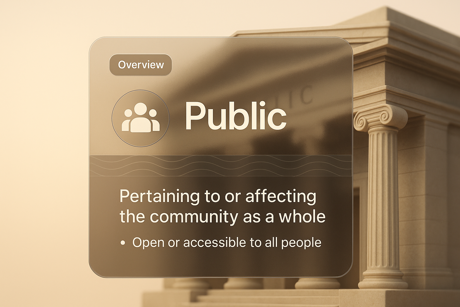 A 3D illustration featuring a glass-like overlay with a public overview block. The design includes a simple gradient background, with a clear focus on readability and aesthetics.