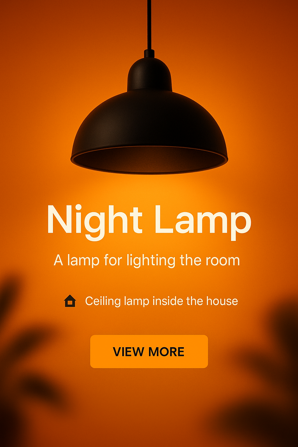 This is a promotional graphic featuring a modern night lamp against a warm orange background. Ideal for home decor marketing.