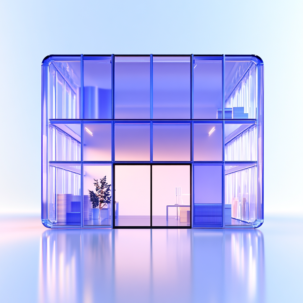 /Collection: /by davooda/Type: PNG/A sleek and modern architectural rendering featuring a glass structure with minimalistic design elements, suitable for real estate marketing or architectural showcases.