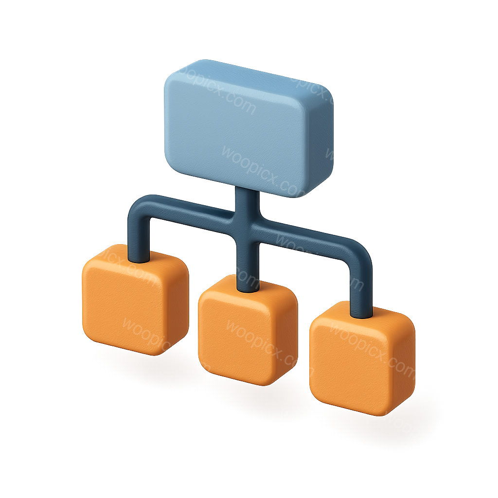 A visually appealing 3D icon depicting a tree structure with a central node and three branching elements, designed with a three-quarter perspective and a soft glow effect.