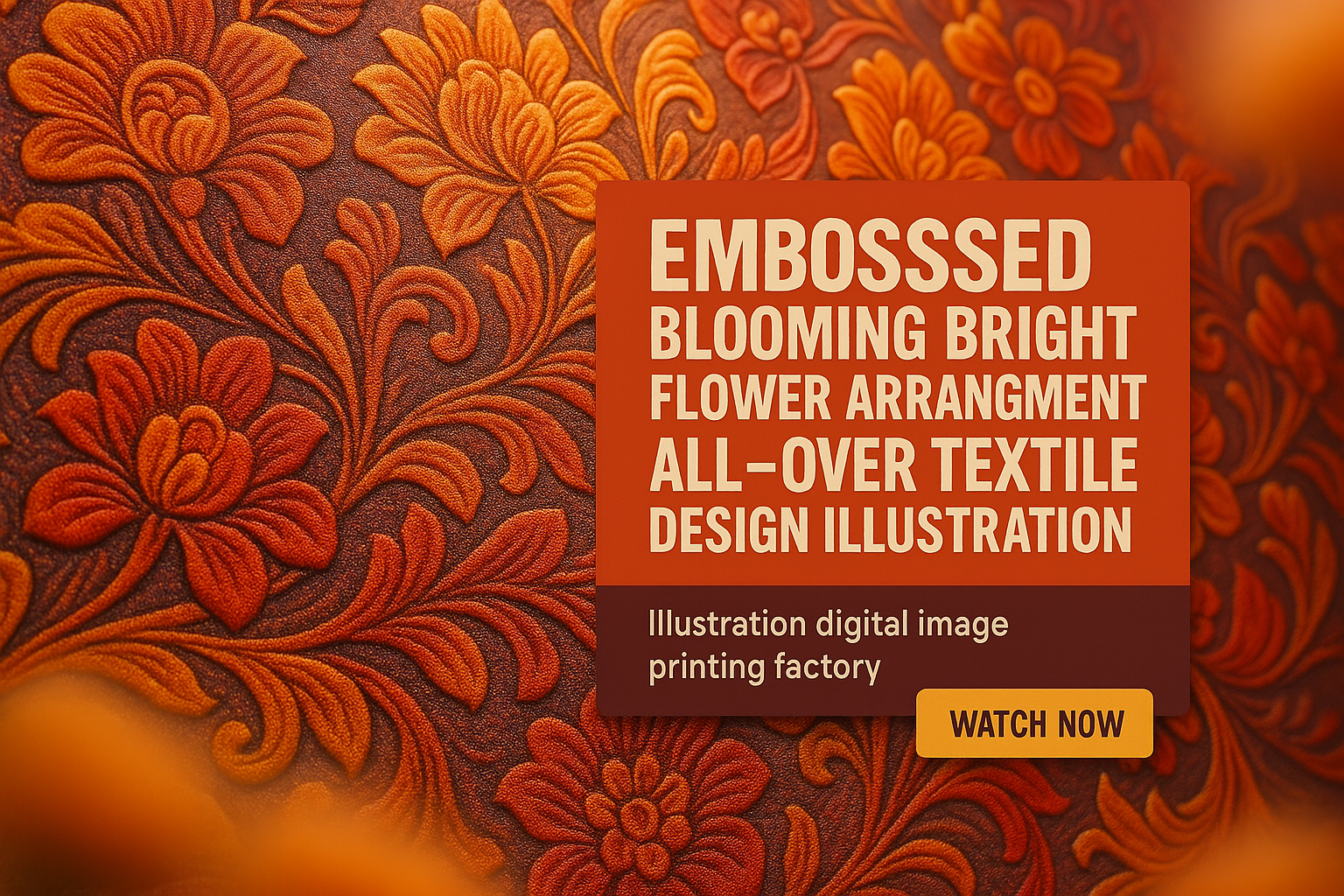 Vibrant textile design illustration showcasing embossed floral patterns, suitable for digital printing applications and textile marketing.